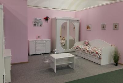 Детскую Белль можно назвать и юношеской серией мебели, так как в ней очень много элементов, например: письменные столы, зеркала и универсальные полки и столы, которые помогут создать быт для уже сложившейся личности, удовлетворить все капризы и запросы. Так же мебель подходит и совсем маленьким деткам, для которых предусмотрен съемный защитный бортик, который устанавливается в кровать.