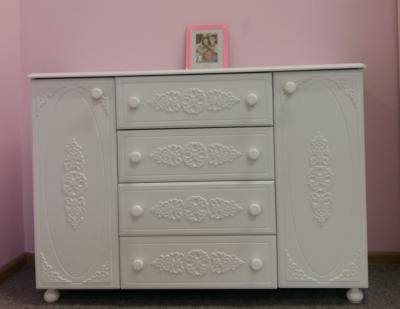 На всех крышках комодов и тумб есть свес и многогранный скос-дизайн, что придает мебели мягкость и делает ее безопасной.