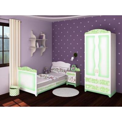 Вы можете выбрать мебель в двух вариантах расцветки фасадов: пастельный зеленый с растяжкой или розовый с растяжкой.