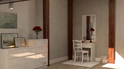 Мебель выполнена из ДСП и МДФ толщиной 16 мм, класс Е1, кромка ПВХ, АБС. Фурнитура ведущих производителей - Blum и Hefele.