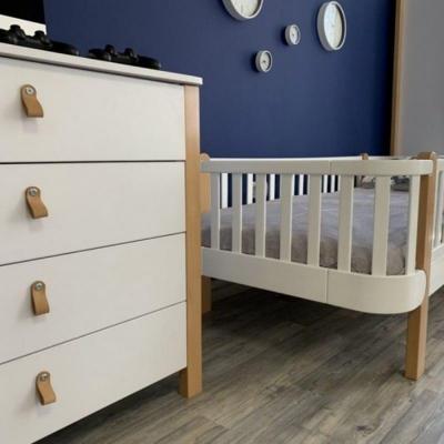Все детали мебели имеют безопасные округлые формы и полированные поверхности. Кровати имеют съемные бортики по бокам, которые защищают ребенка от падения во сне.
