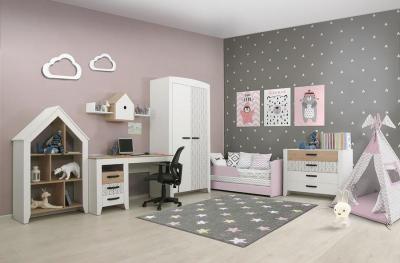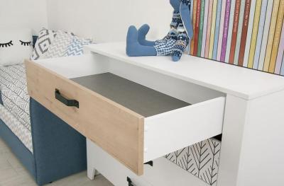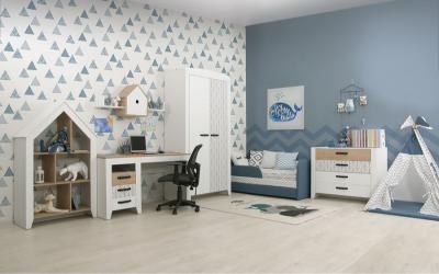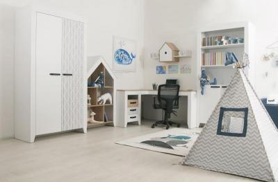 Детская мебель Нордик - новый комплект мебели для детей от компании Неман. Это стильная и функциональная комната для вашего ребенка. Необычный декор фасадов сразу обращает на себя внимание. Удобное спальное место, функциональный рабочий стол, вместительный шкаф, необычной формы стеллаж - в комнате есть все, необходимое современному тинейджеру! Отличное сочетание цветов, четкие линии, такая спальня долго не выйдет из моды и будет служить вам долгие годы!