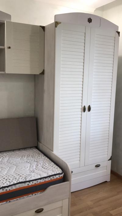 Морской стиль детской Океан превосходно подчеркивает фурнитура латунного цвета, стилизованная под элементы корабля. Здесь вы увидите и штурвал, и якоря, и морские узлы. Неукротимая детская энергия найдет выход в декоративных элементах этой коллекции – подвесных канатах-лианах, трапах и прочных веревочных сетках. Добавьте в эту детскую развивающие элементы – глобусы, карты мира, морские бинокли, и ваш ребенок получит возможность для гармоничного развития и расширения кругозора.