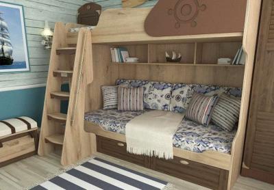 Детская Океан представлена в оригинальных тонах – Дуб Сонома и Сосна Антик, отлично имитирующих палубу морского корабля. Также вы можете заказать мебель в белом цвете.