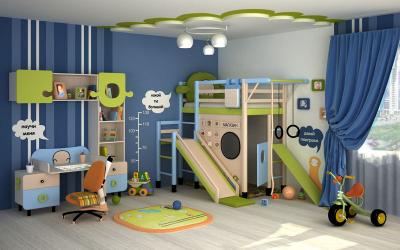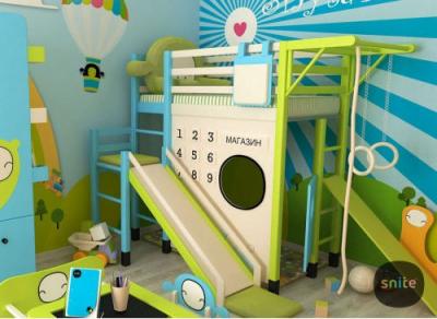 По мере взросления ребенка вы можете заменить кроватку-манеж на полноценную детскую кровать. В этой серии мебели дизайнеры предлагают совместить спальное место с игровым блоком. Чего тут только нет! Горка и лесенки для веселых игр, канаты и кольца для занятий спортом, скрытый уголок под кроватью для детских тайн и секретов и еще масса увлекательных и интересных вещей! В оформлении кроватного блока используются фирменные герои этой серии – симпатичные снайтики.