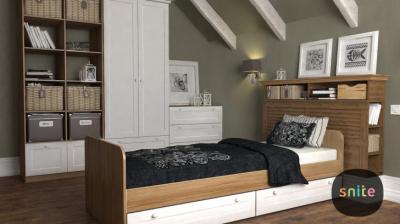 Вы можете купить детскую Вайт (White), Snite в Киеве или любом другом городе Украины в базовой комплектации, либо же добавить в нее дополнительные декоративные элементы – карнизы для шкафа, спинку для кровати, выкатные ящики и т.д.