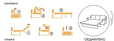 Трансформация дивана в положение для сна "кровать" производится с помощью механизма трансформации.
