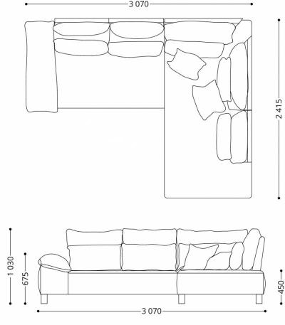 Диван Лаунж угловой - 3070*2100*1030 мм (с механизмом регулировки спинки 5 шт.);