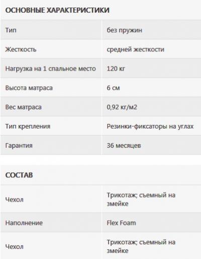Тонкий матрас Aero Flex состоит из высокоэластичного материала Flex Foam. Он моментально принимает очертания тела спящего, помогает расслабить мышцы и погрузиться в сон. Тонкий слой синтепона и трикотажная обшивка делают изделие приятным на ощупь. По периметру матрас обшит аеросеткой, которая создает оптимальный воздухообмен. Высота изделия 6 см, а максимальная нагрузка составляет 100 кг. Матрас можно свернуть в рулон, что значительно упрощает его хранения и транспортировки. Гарантия на изделие 3 роки.ремя засыпания.