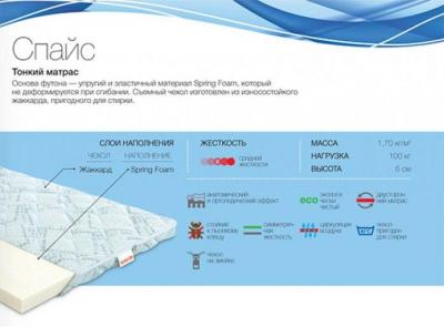Футон Спайс - тонкий матрас на основе элластичного и упругого материала SpringFoam, который быстро восстанавливает свою форму после деформации.