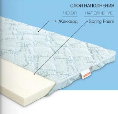 Пена Spring Foam - современный вид пенополиуретана. Разработан с применением передовых технологий. Сочетает ортопедические, анатомические свойства, прочность, упругость, гипоаллергенность, износоустойчивость. В Spring Foam исключено появление пылевых клещей и демодексов. Материал вынослив и хорошо выдерживает циклические нагрузки.
