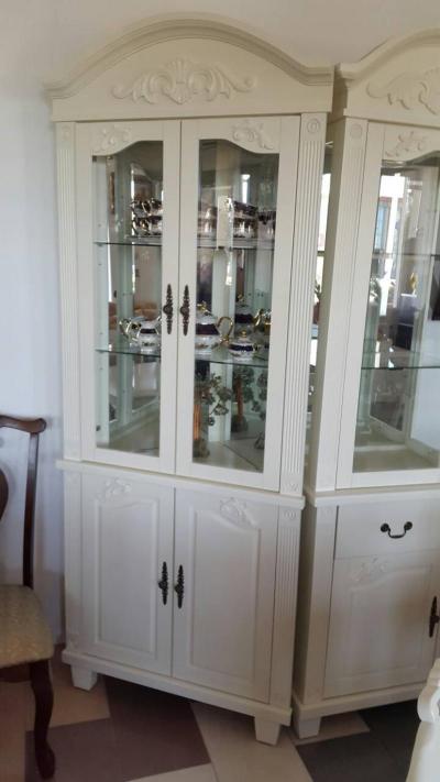 Лицевые поверхности элементов украшены резьбой. Витрины оборудованы подсветкой.