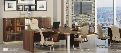 Кабинет Глосс премиум-класса сочетает в себе лучшие решения, которые делают рабочее место руководителя наиболее современным и комфортным. Мебель идеально подойдет для тех, кто предпочитает интерьеры в стиле современного минимализма.