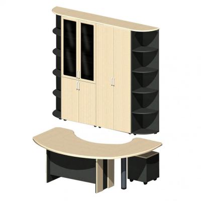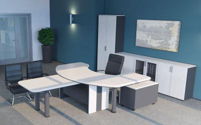 Кабинет Гранд (МДФ) - обтекаемые формы кабинета делают его необычайно удобным и функциональным для работы, а широкий модельный ряд элементов и модульный принцип компоновки позволяет создавать разнообразные формы и комплектации столов руководителя на любой вкус.