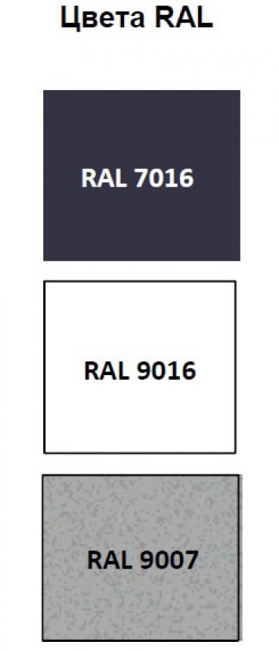 Цвет RAL для металлокаркаса - RAL 7016; RAL 9016 (белый); RAL 9007.