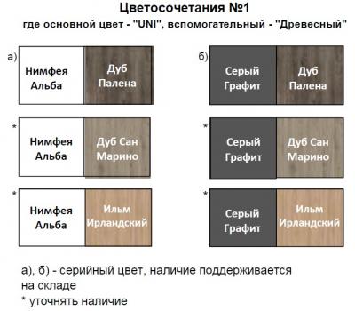 - Цветосочетание №1: основной цвет - "UNI", вспомогательный - "Древесный";
