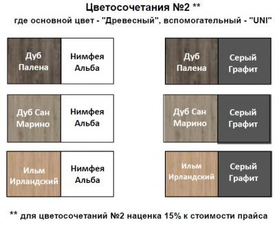 - Цветосочетание №2: основной цвет - "Древесный", вспомогательный - "UNI" (наценка +15%)
