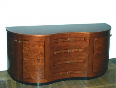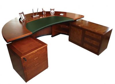Обкладка торца столешницы выполнется из массива дерева. В комплект стола входят также - малая тумба и тумба-помощник.