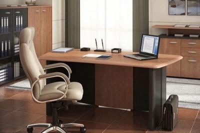 Статус владельца кабинета подчеркивает массивная плита столешницы и строгий стильный дизайн.