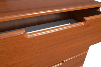 Комод К005 имеет четыре выдвижных ящика одинаковой высоты. Роль ручек выполняют изящные выемки на фасадах изделия.