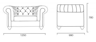 Габаритные размеры кресла Честер (Chester): 1250*990*780 мм.