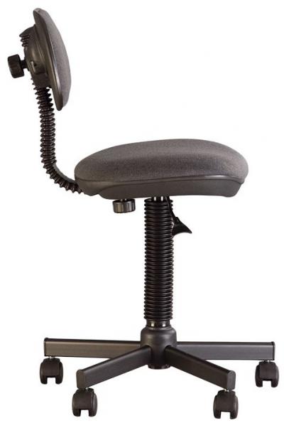 Мягкое обитое сидение. Высота сидения регулируется при помощи пневматического подъемника, а глубина - при помощи винтов.