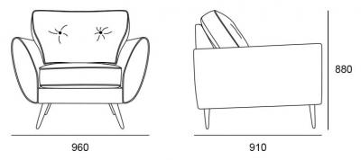 Габаритные размеры кресла Мальмо (Malmo): 960*910*880 мм.