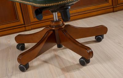 Основой для сидения является прочный и надёжный металлический каркас, который закрывают декоративные деревянные накладки из натурального дерева (бука). Крестовина кресла снабжена прорезиненными роликами, что позволяет креслу не повреждать поверхность пола и передвигаться по ней практически бесшумно.