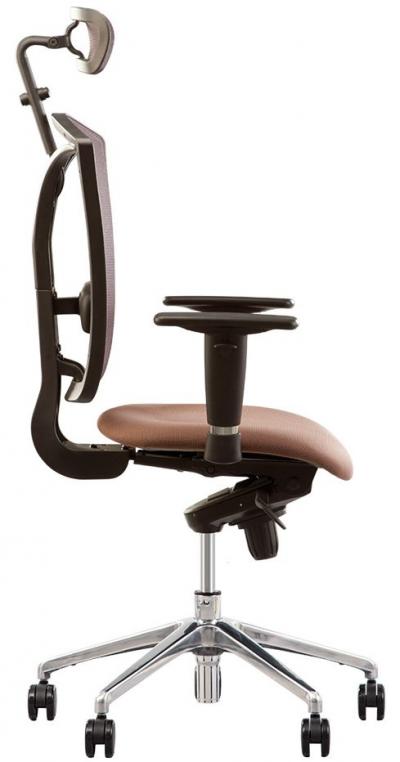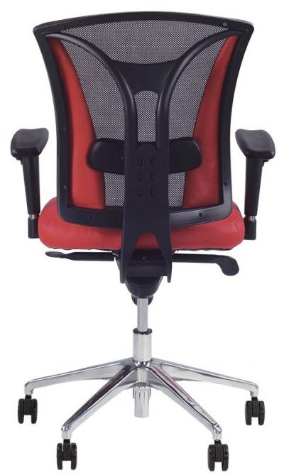 Эргономичная спинка из эластичной «дышащей» сетки и оснащенная мягким поясничным валиком, регулируемым по высоте