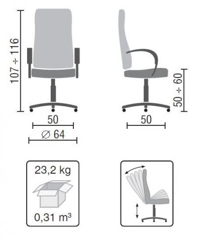 Кресло Соната (Sonata) Примтекс комплектуется металлическими подлокотниками и металлической крестовиной цвета алюминий. Может регулироваться по высоте с помощью удобного газлифта и оснащается механизмом качания на выбор. В стандартном исполнении крестовина комплектуется пластиковыми роликами для ковровых покрытий. Возможна комплектация кресла пластиковыми роликами с резиновым покрытием для паркетных или ламинированных поверхностей. Вес - 23.2 кг.