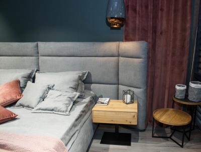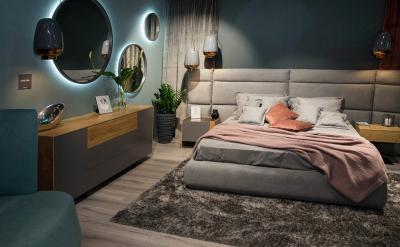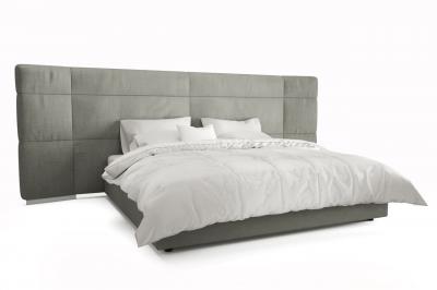 Большое мягкое изголовье – изюминка этой модели. Оно смело может выступить в качестве основного декора стены, а также добавит удобства во время отдыха. Дизайнерский нюанс: изголовье дополнено регулируемыми элементами по краям. Это дает возможность видоизменять их положение, придавая изголовью прямую или вогнутую форму.