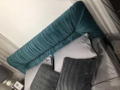 - Основание – конструкция из деревянных брусков и плиты ДСП. Внутри кровати короб, используемый и как ниша, и как элемент, дополняющий прочность конструкции. Изголовье кровати – ДСП с настилом из пенополиуретана;