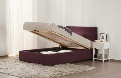 - Кровать комплектуется ламельной сеткой из натуральной древесины или сеткой на металлическом каркасе, которая подымается с помощью газового подъемника и открывает доступ к нише для постельных принадлежностей;