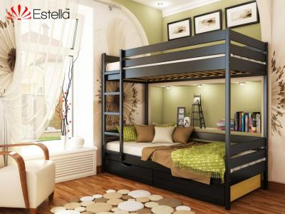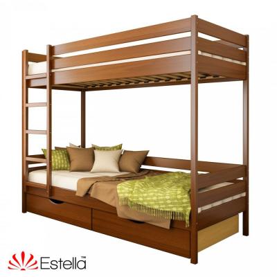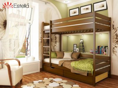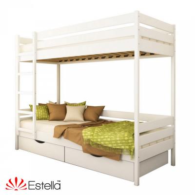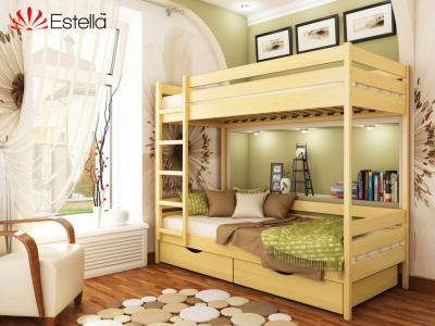 Кровать Дуэт от ТМ Эстелла -двухъярусная кровать из натурального дерева (бук). В конструкции кровати Дуэт всё продумано до мелочей. По периметру обоих ярусов располагается защитная спинка, а внизу кровати вы можете установить выдвижные ящики из качественного ДСП, на колесиках, которые двигаются, не повреждая ваше напольное покрытие.