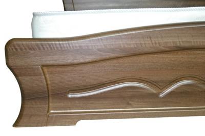 Изголовье, изножье и царги кровати выполнены из экологически чистой плиты МДФ (32 мм), покрытой пленкой ПВХ, что защищает поверхности кровати от царапин и ударов.