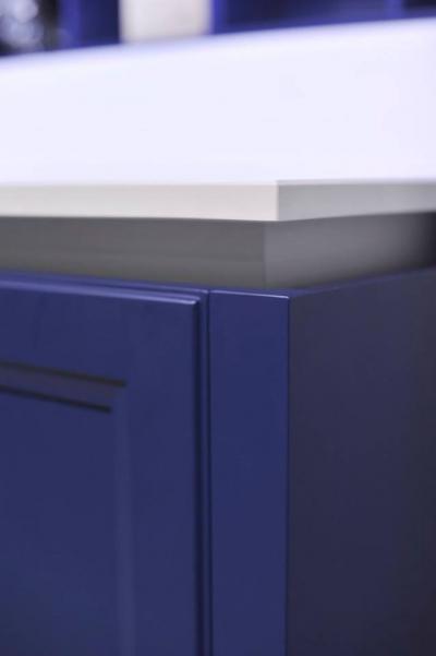 Отличительная черта кухни Блюмарин (Blue Marine), ELNOVA – рамочные фасады с четкими геометрическими линиями. Строгая элегантность фасадов подчеркивается утонченными элементами с остеклением, а особый шик кухне Блюмарин придает эксклюзивный цвет оттенка Blue Marine.