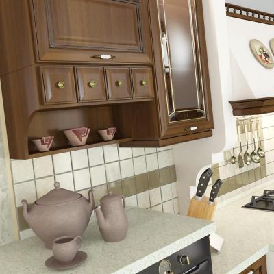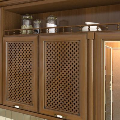 Фасады кухни Каролина (Carolina) изготовляются из ольхи и тонированы под орех. Витражные стёкла и разнообразные декоративные элементы подчёркивают неповторимость образа этой мебели.