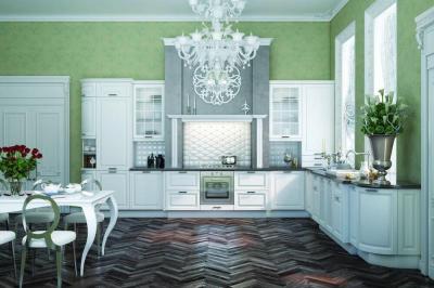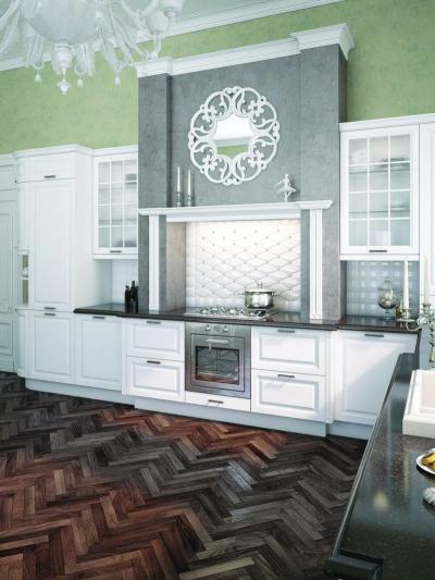 Фасады, которыми снабжается кухня Касабланка (Casablanca), являют собой традиционную конструкцию, состоящую из деревянной рамки толщиной 20 мм и шириной 68 мм, а также филёнки из МДФ и покрытой натуральным шпоном.