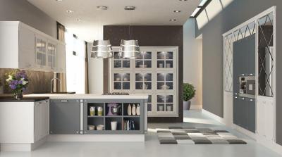 Отличительной особенностью кухни Лаура (Laura) являются декоративные металлические вставки «бабочки» в углах фасадов.