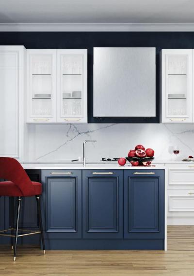 Фасады, которыми снабжается кухня Лондон (London), являют собой традиционную конструкцию, состоящую из деревянной рамки, а также филёнки из МДФ, покрытого эмалью.