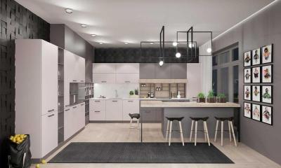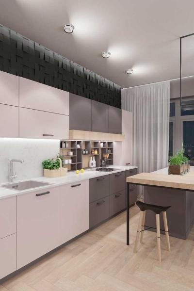 Возможно выбрать как монохромную кухню, так и выполненную в комбинации разных оттенков.