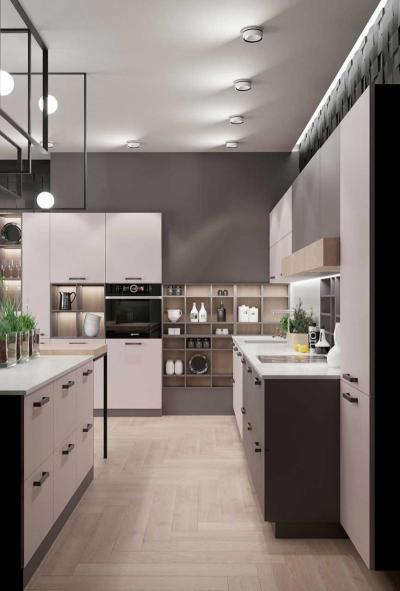 Кухня Наоми (Naomi) IP идеально подойдет для разных площадей и планировок. Даже небольшие пространства она может визуально расширить, сделав их уютнее и эргономичнее. Этому способствуют ультратонкие фасады, специальная фурнитура и простые формы.