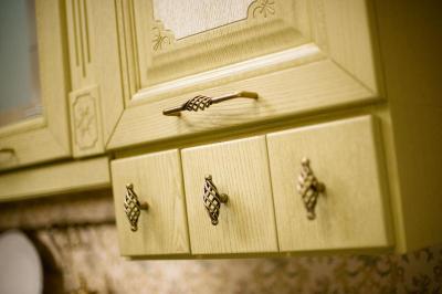 Те же, кто предпочитает натуральные цветовые решения, могут выбрать для себя кухню Прованс (Provence) в цвете «орех». В этом случае фасады с одноцветным покрытием изготавливаются из массива натурального дерева (ольхи) и специально тонируются в цвет «орех». После этого поверхность фасада покрывается защитным лаком и патиной.