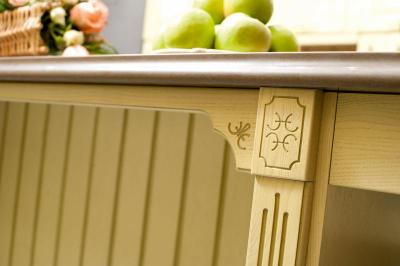 Фасады кухни Прованс () состоят из рамки из массива дерева (материал - ясень/ольха) и филёнки (МДФ, шпонированный ясенем или ольхой). Каждый фасад украшен декоративной фрезеровкой по филенке.