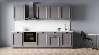 От минимализма в кухне Сорренто (Sorrento) присутствует функциональность и строгость линий. Здесь вы не найдете фигурных карнизов или радиусных полок. Все в этой модели подчеркнуто просто, надежно, но, вместе с тем, очень элегантно. Эту элегантность кухне Сорренто (Sorrento) придают ноты классицизма, проявляющиеся в рамочных фасадах и декоративных колоннах по обеим сторонам пенала. Сдержанный элегантный декор отлично сочетается с идеей кухни в стиле минимализм, смягчая ее и добавляя оттенок "тонкой роскоши".