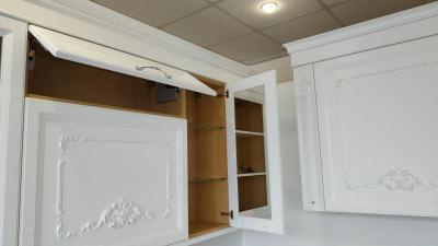 Фасады: натуральное дерево (рамка), МДФ шпон (вставка), цвет - белый.