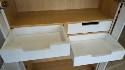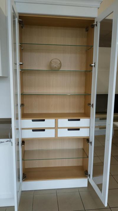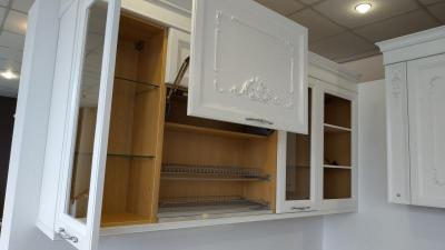 В застеклённых фасадах стекла по периметру обработаны фацетом. Секции для сушки посуды, могут снабжаться фасадами в виде вертикальной решетки.