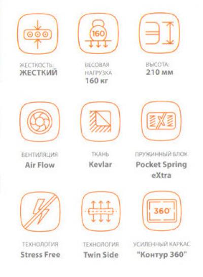 Матрац Экстра Аргон - двухсторонний пружинный матрас с усиленным каркасом на основе блока независимых пружин. С обоих сторон матраса имеется слой трикотажной гипоаллергенной ткани Kevlar, устойчивой к возгоранию и износу.