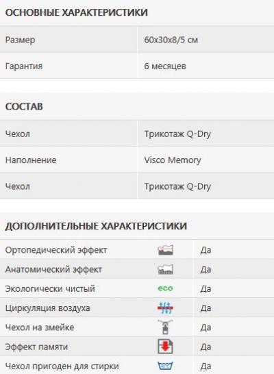 | Наполнение | Visco Memory |