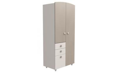 Шкаф Верес №2 предназначается для хранения одежды, а также личных вещей ребенка (в т.ч. и игрушек). Пространство внутри шкафа разделено на две части: слева - три ниши и три ящика, справа - перекладина для хранения вещей в висящем положении и две ниши (сверху и снизу).